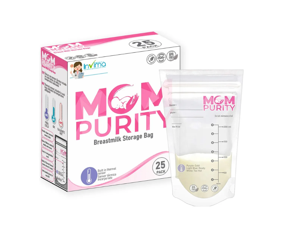 Las Bolsas de Almacenamiento de Leche Materna Mom Purity están diseñadas para brindarte la mejor experiencia durante tu etapa de lactancia. Este paquete incluye 50 bolsas preesterilizadas, con una capacidad de hasta 200 ml (7 oz) por unidad.Cuentan con un doble cierre hermético tipo Click ‘n’ Secure para evitar fugas y mantener la leche bien protegida.