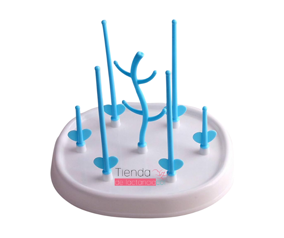 Cuenta con un diseño modular y personalizable, ya que sus clavijas son removibles, lo que te permite adaptarlo según el tamaño y la cantidad de productos que necesites secar: biberones, tetinas, cucharas, tazas, válvulas, recolectores y más. Su estructura permite una ventilación eficiente que acelera el secado sin dejar acumulación de humedad.