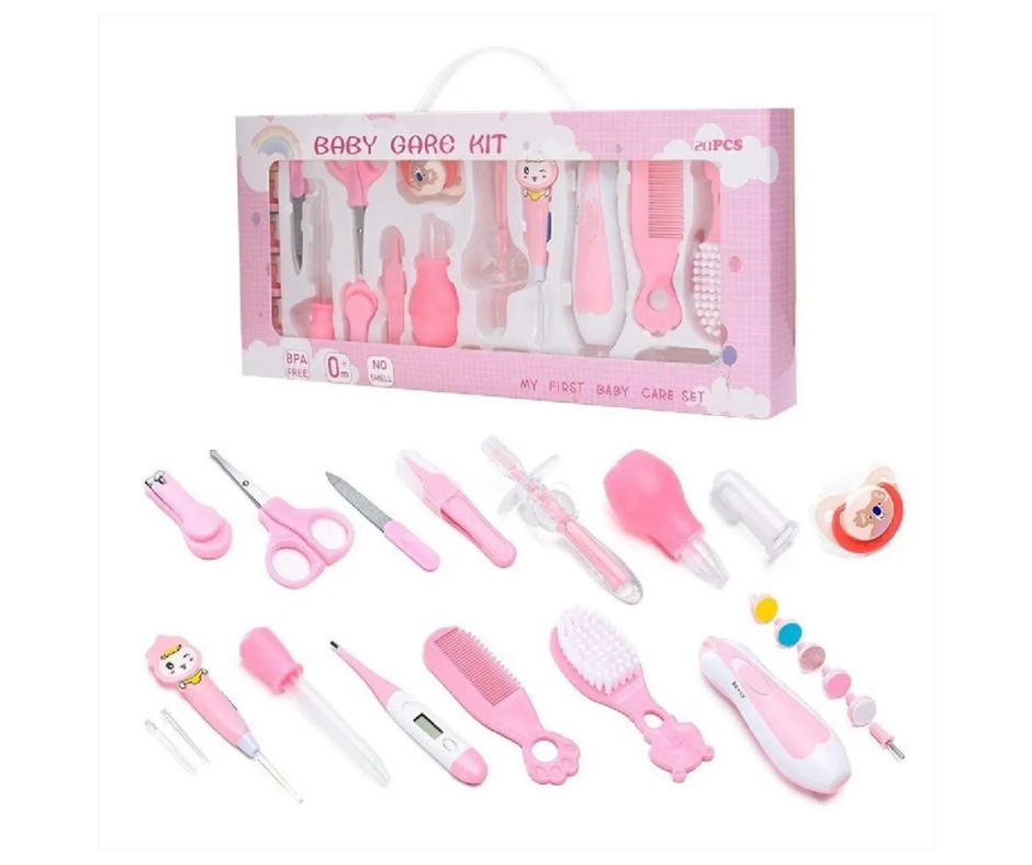 Set de aseo para bebé de 20 piezas, completo, práctico y seguro. Incluye herramientas de cuidado personal desde el nacimiento, fabricadas con materiales libres de BPA.